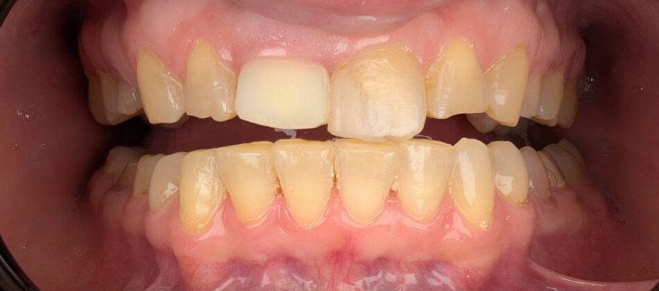 In the process of preparing for prosthetics, the patient wished to change the color of all his teeth.